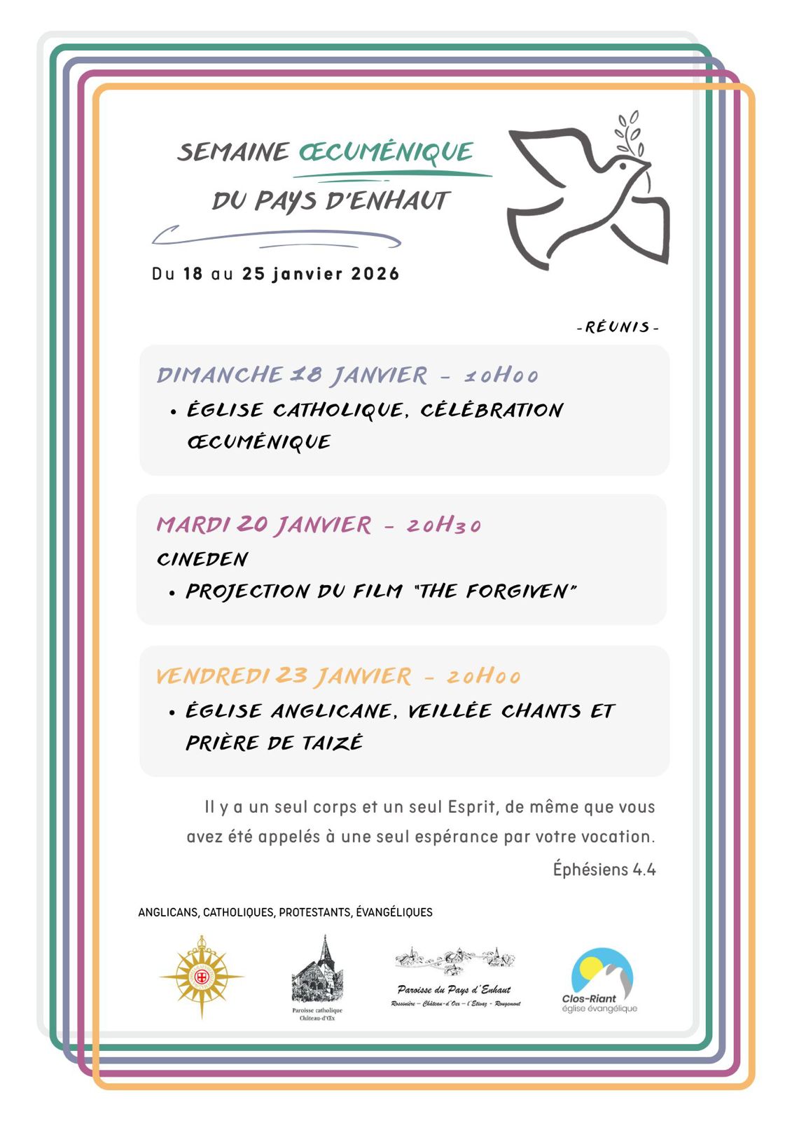 Bienvenue à ces rencontres œcuméniques. Voir programme ci-joint.